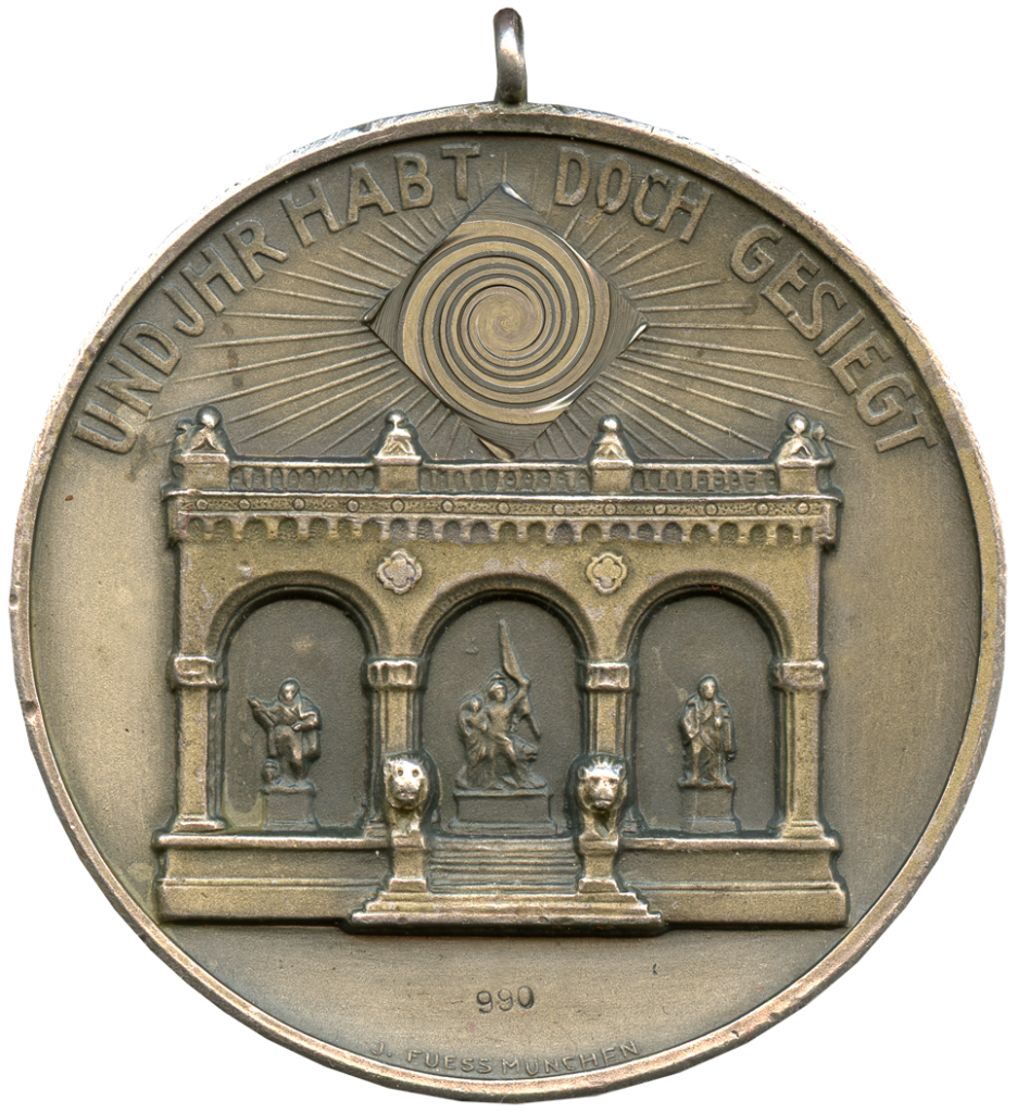 Der künstlerische Entwurf und die Modellierung stammen von dem Goldschmiedemeister Josef Fuess in München.