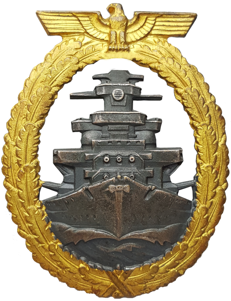 2. Das Abzeichen kann den Besatzungen (einschließlich der gefallenen oder verstorbenen Soldaten und sonstigen berechtigten Anwärter) der eingesetzten Schlachtschiffe und Kreuzer verliehen werden. Die Verleihung erfolgt durch den Befehlshaber des Verbandes.